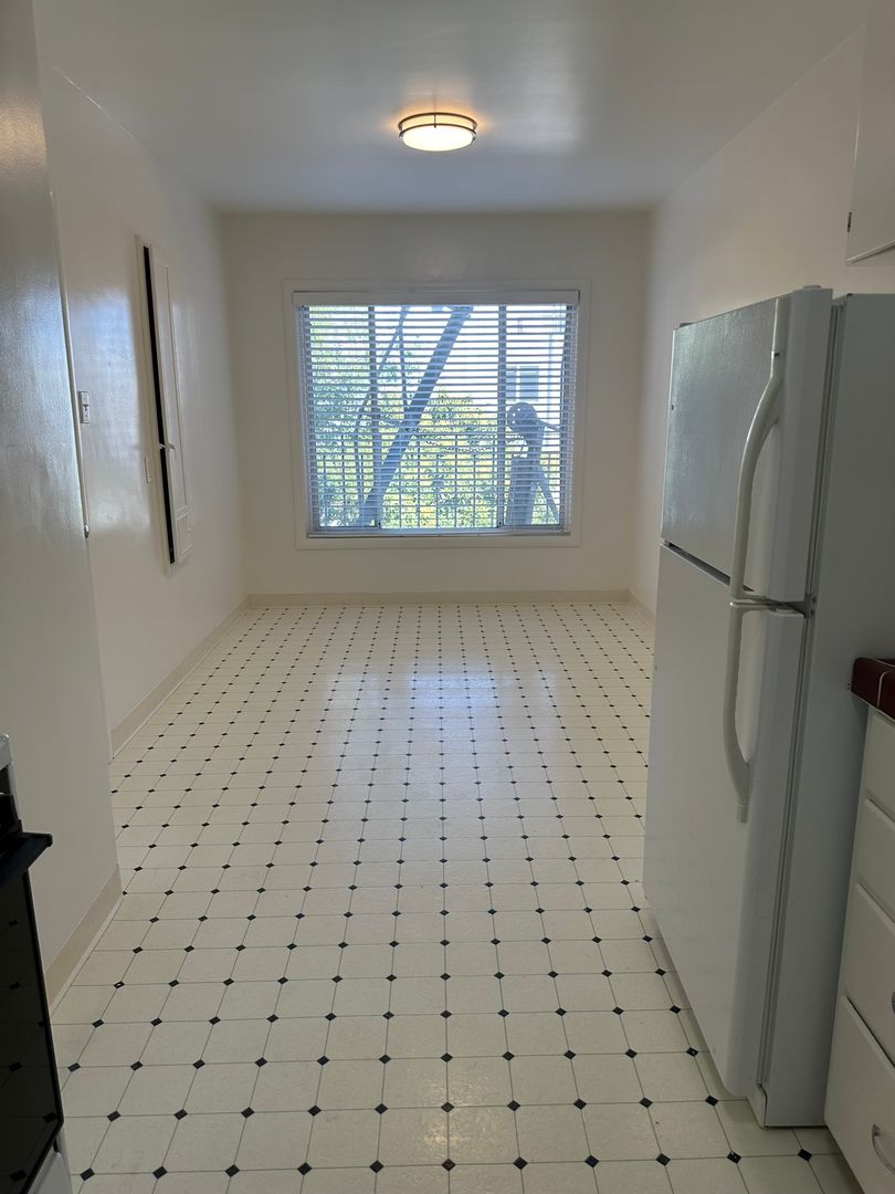 - Kitchen with gas range and refrigerator (no dishwasher) and large eating area