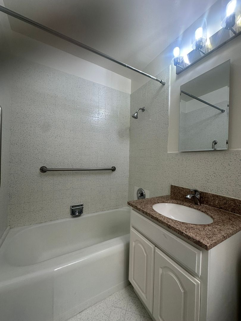 - One bathroom with shower over tub